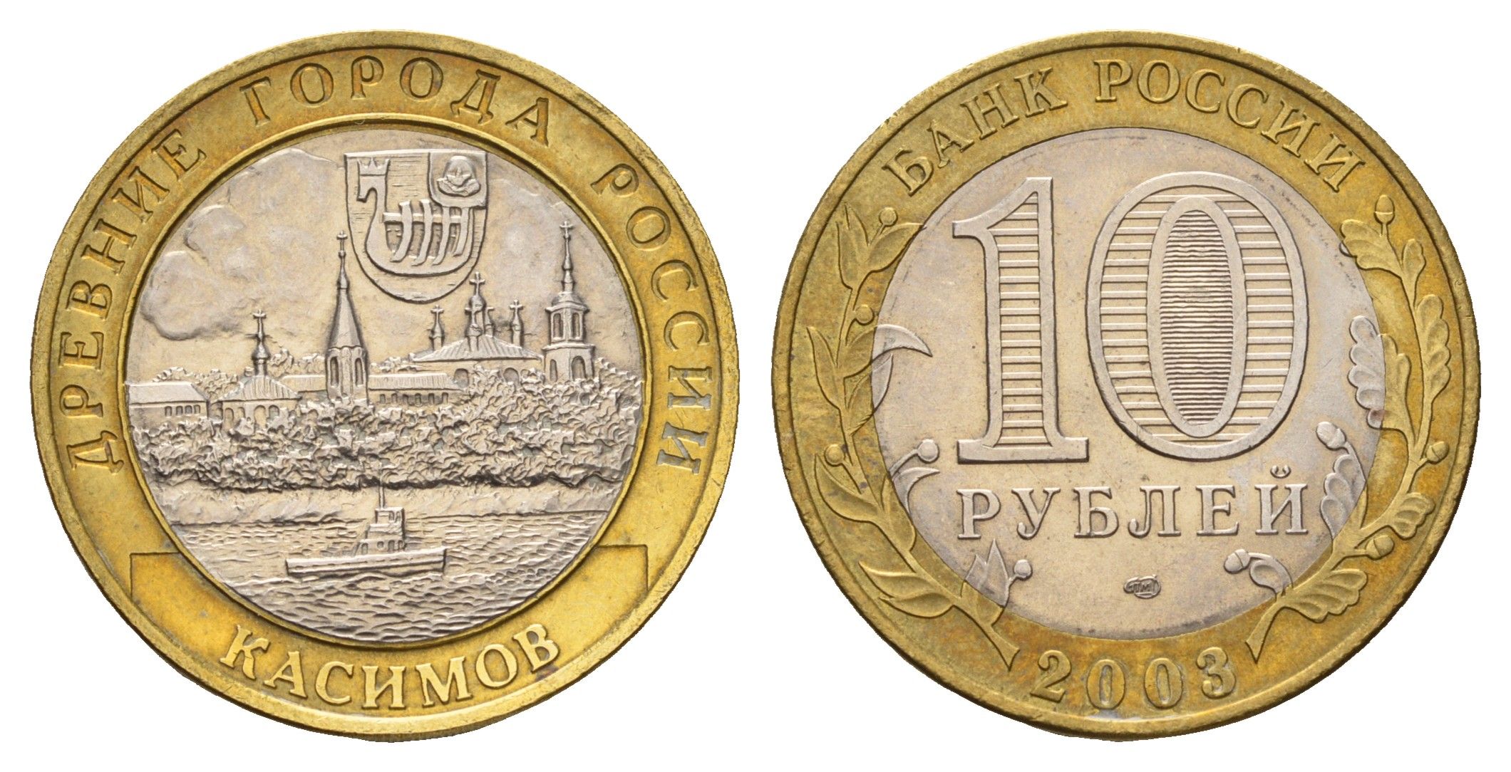 Россия 10 рублей 2003 СПМД, древний города России - Касимов Y 818 биметалл UNC 217-1047