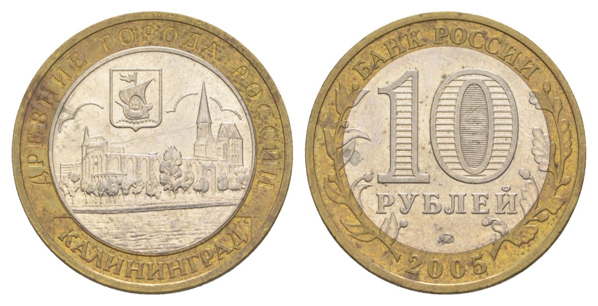 Россия 10 рублей 2005 ММД, древний города России - Калининград Y 946 биметалл 4629-1215