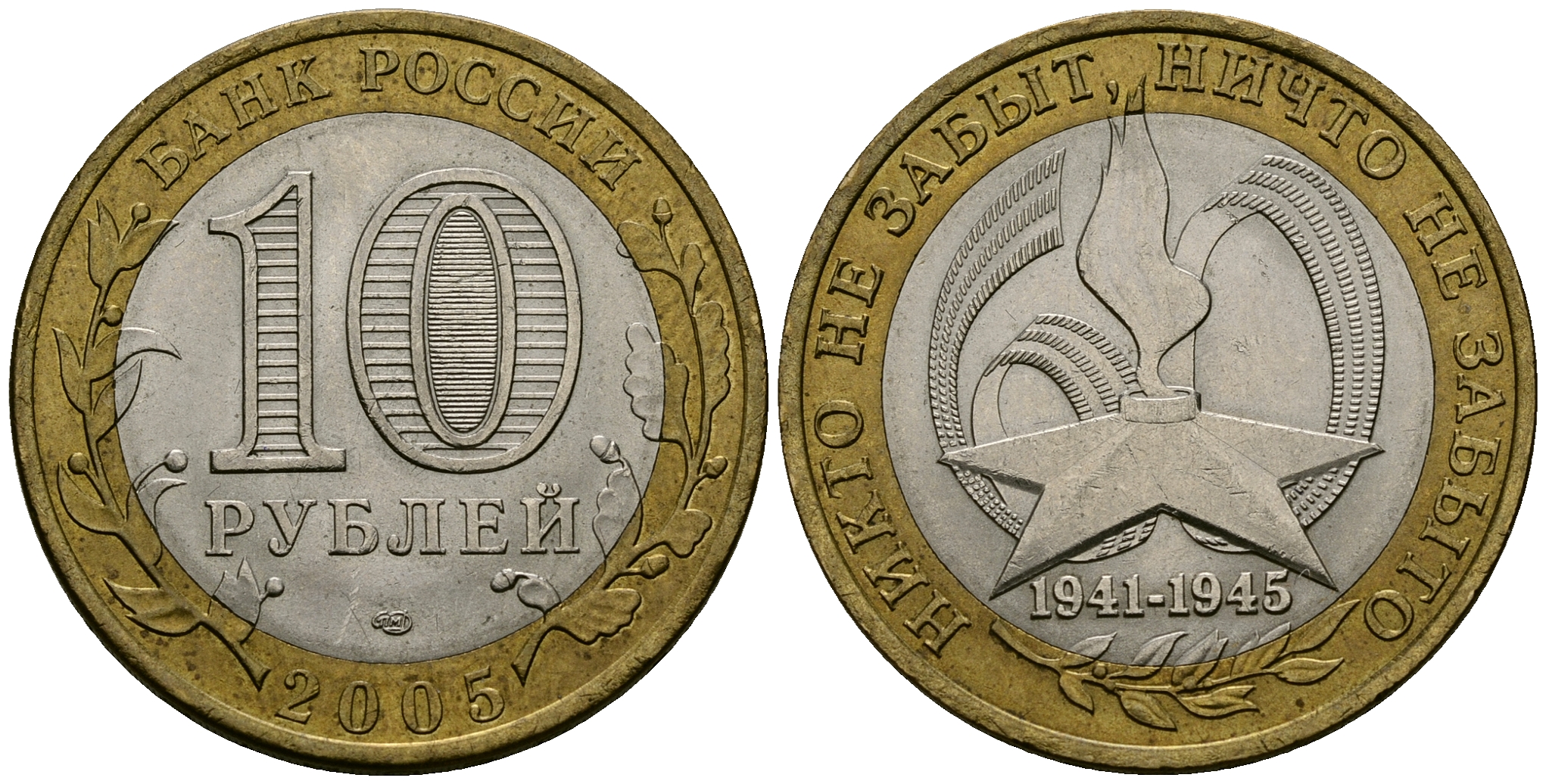 Россия 10 рублей 2005 СПМД, 60 лет Победе в Великой Отечественной войне 1941-1945 гг KM 827 биметалл 4583-914