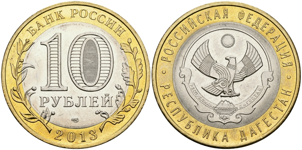 РОССИЯ 10 РУБЛЕЙ 2013 СЕРИЯ СУБЪЕКТЫ РОССИЙСКОЙ ФЕДЕРАЦИИ, РЕСПУБЛИКА ДАГЕСТАН KM NEW биметалл UNC 540-846