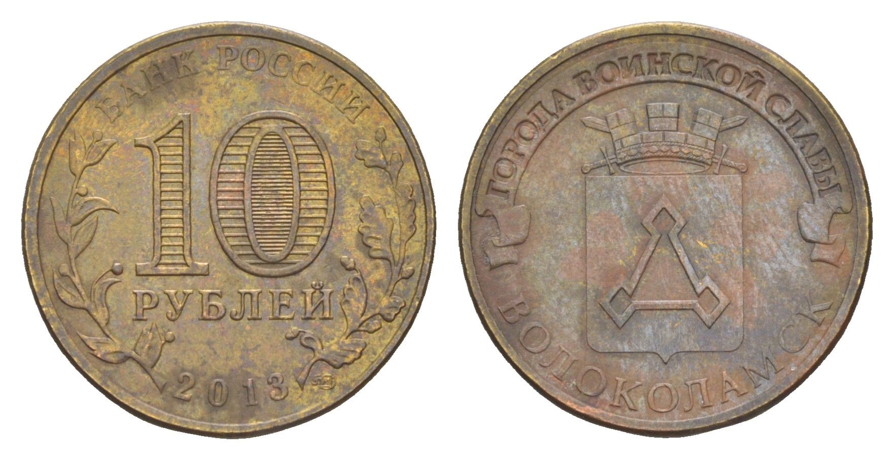 Россия 10 рублей 2013 СПМД, Города воинской славы - Волоколамск Y 1469 сталь плакированная латунью 4379-816