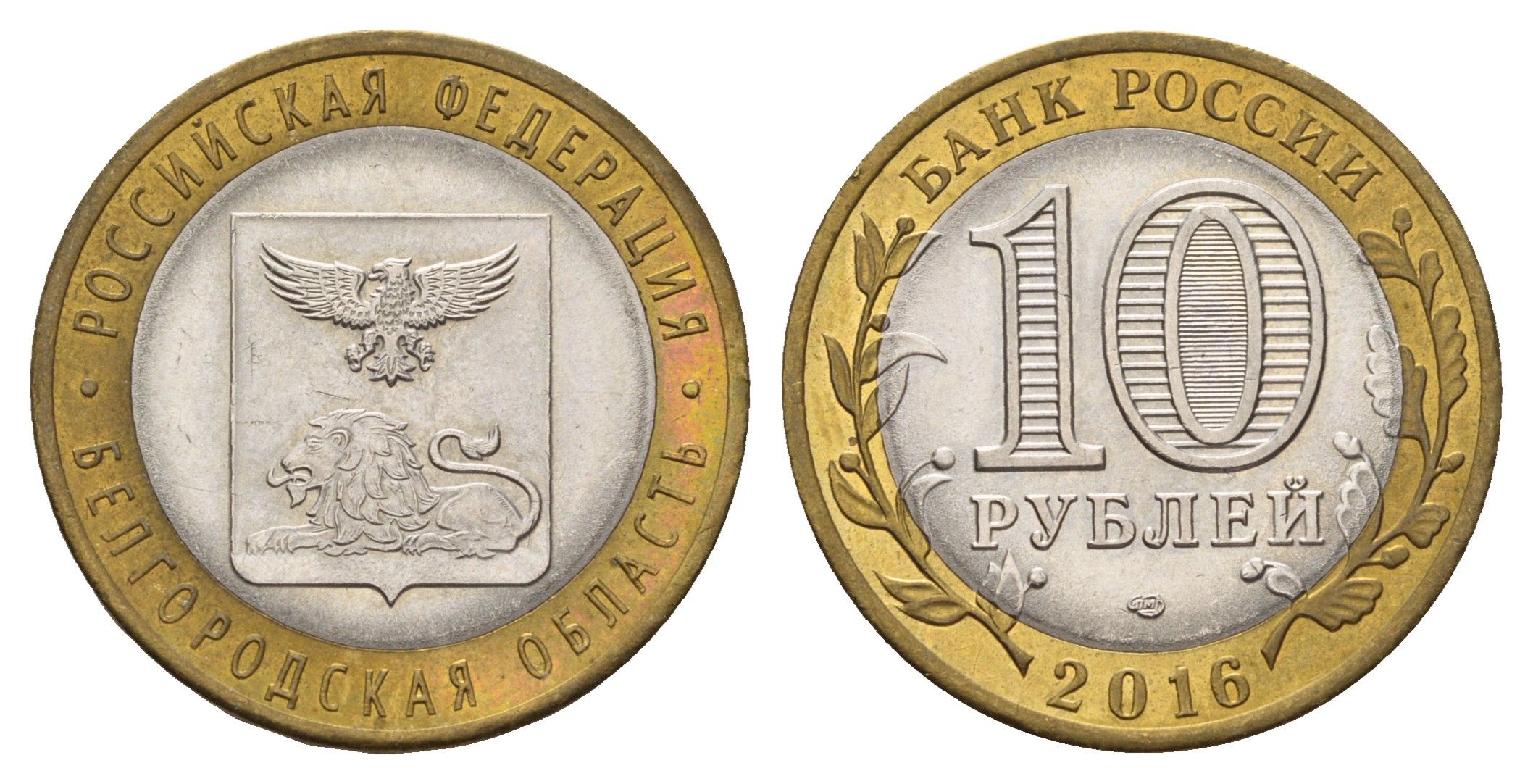 Россия 10 рублей 2016 серия Российская федерация - Белгородская область Y 1728 биметалл aUNC 3718-511