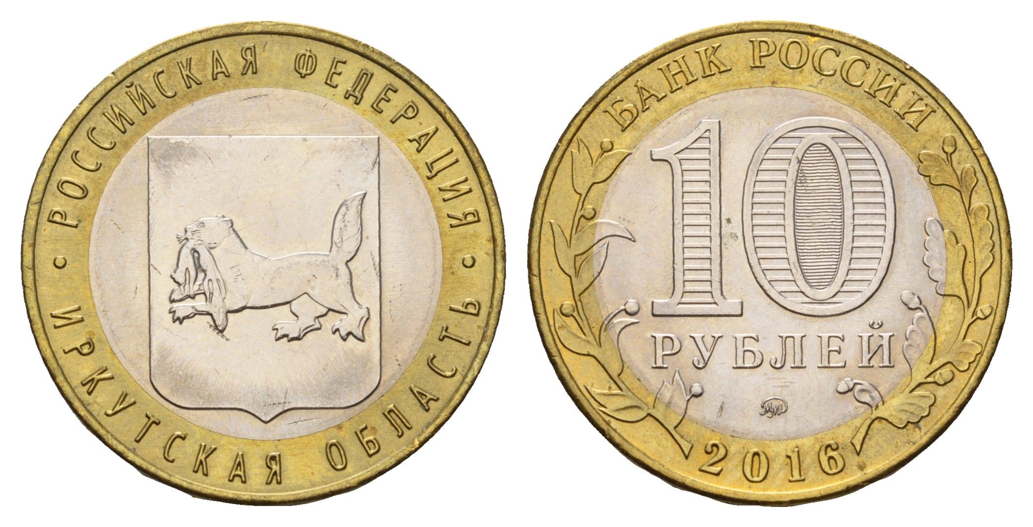 Россия 10 рублей 2016 серия Российская федерация - Иркутская область Y 1729 биметалл aUNC 3718-534