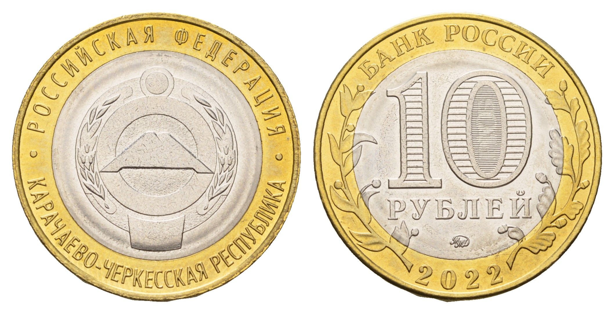 Россия 10 рублей 2022 серия Российская федерация - Карачаево-Черкесская Республика Y 2029 биметалл UNC 3457-825