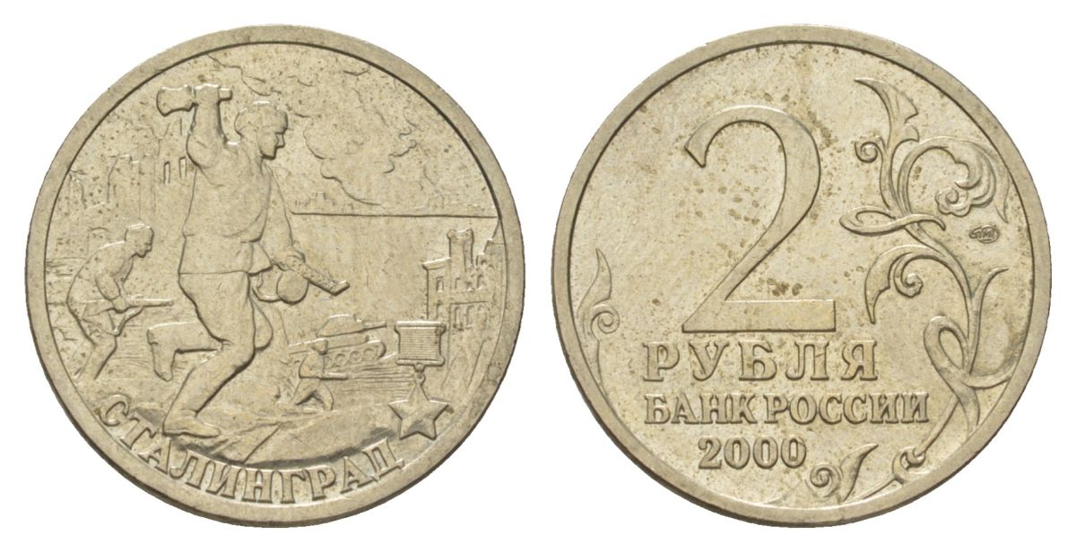 Россия 2 рубля 2000 Сталинград, 55 лет Победы Y 663 медно-никель 4628-835