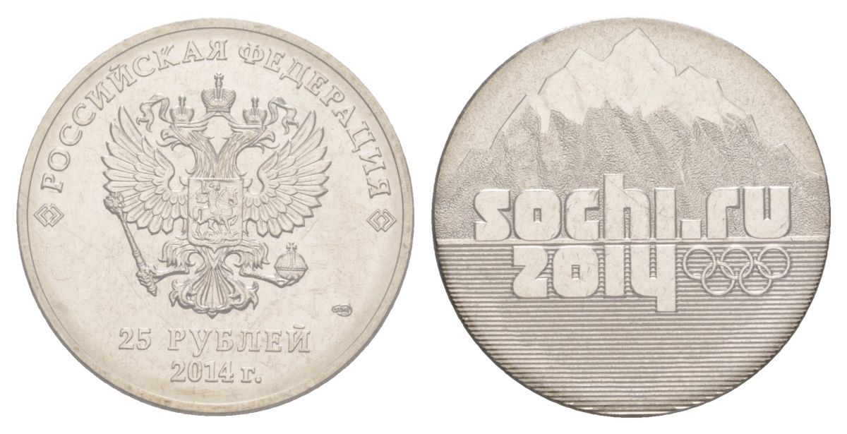 Россия 25 рублей 2014 XXII зимние Олимпийские Игры и XI зимние Паралимпийские Игры, Сочи 2014 - Факел, в запайке Y 1501 медно-никель UNC 4185-115