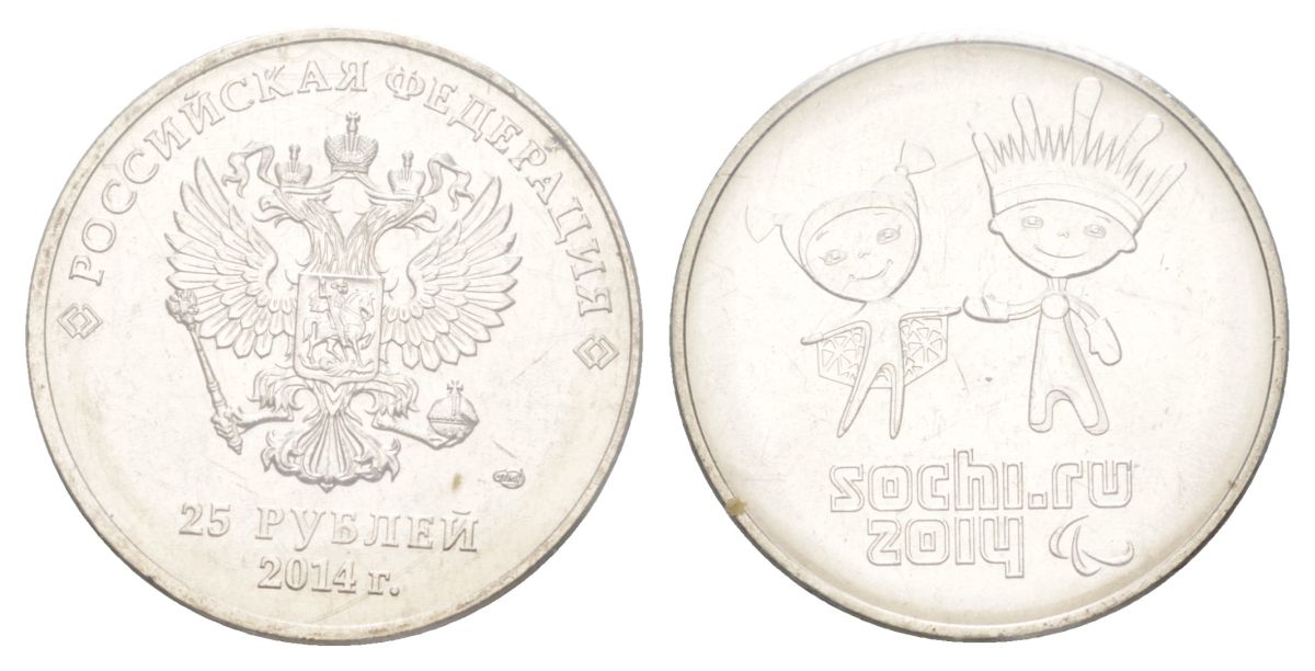 Россия 25 рублей 2014 XXII зимние Олимпийские Игры, Сочи 2014 - Талисманы, в запайке Y 1472 медно-никель UNC 4179-1132