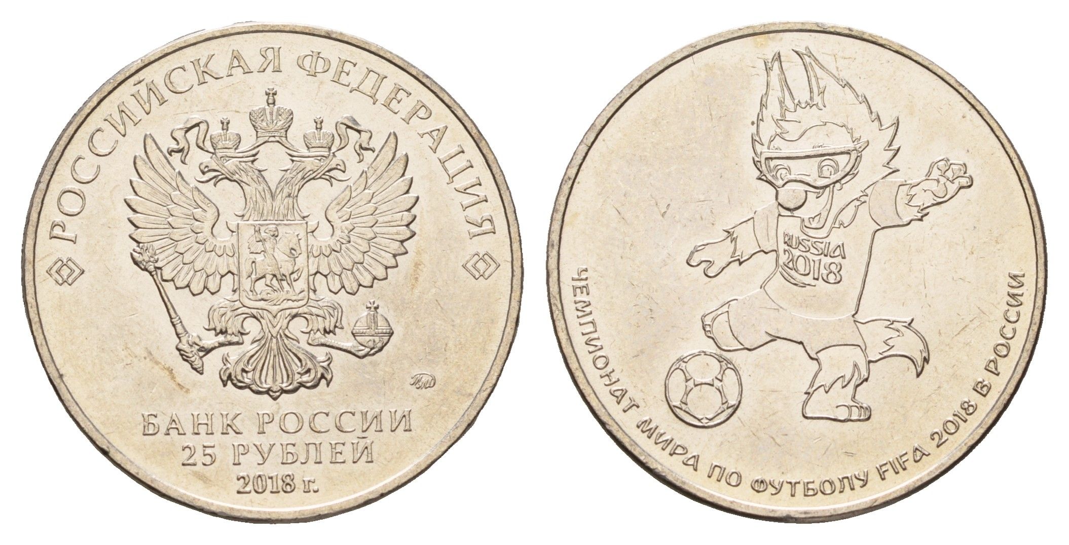 Россия 25 рублей 2018 Чемпионат мира по футболу 2018, Россия - Логотип Y 1833 медно-никель UNC 3853-217
