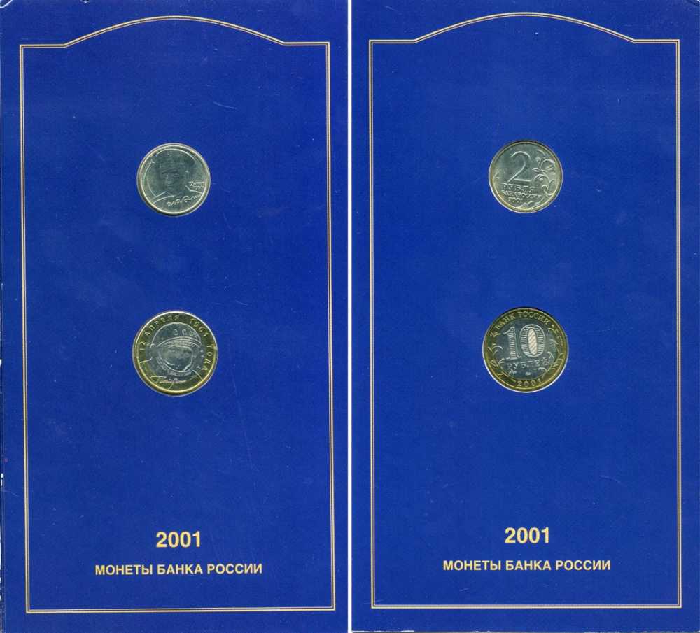 Россия набор из 2 монет 2001 ММД, 2 и 10 рублей, 40-лет полета первого космонавта планеты Юрия Алексеевича Гагарина, в оригинальном буклете, официальный набор Банка России UNC 8-1-05-10