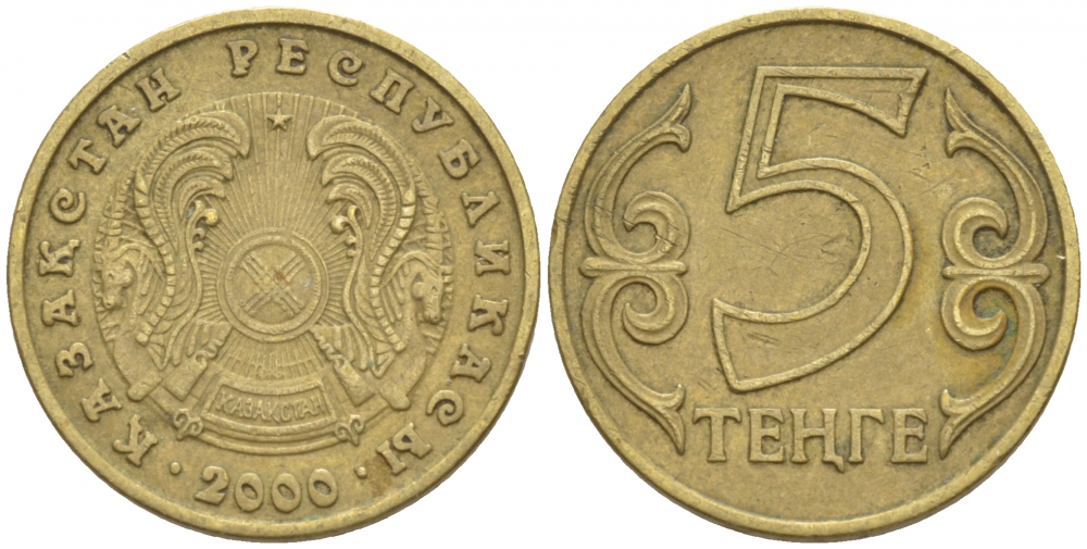 КАЗАХСТАН 5 ТЕНГЕ 2000 KM 24 латунь 4547-1116