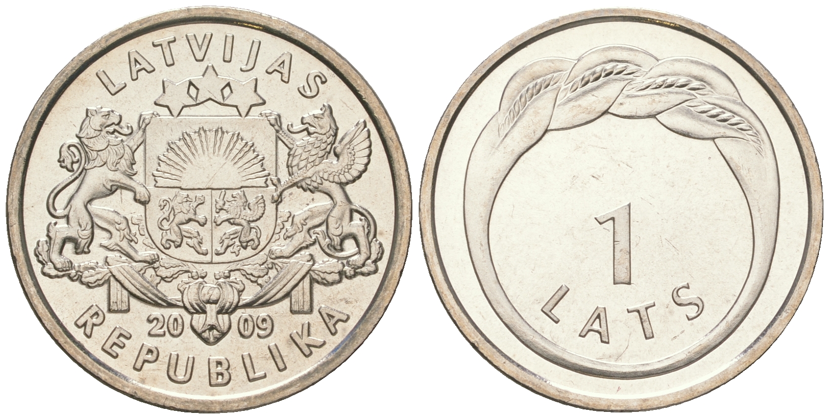 Латвия 1 лат 2009 именное кольцо KM 101 медно-никель UNC M5-01
