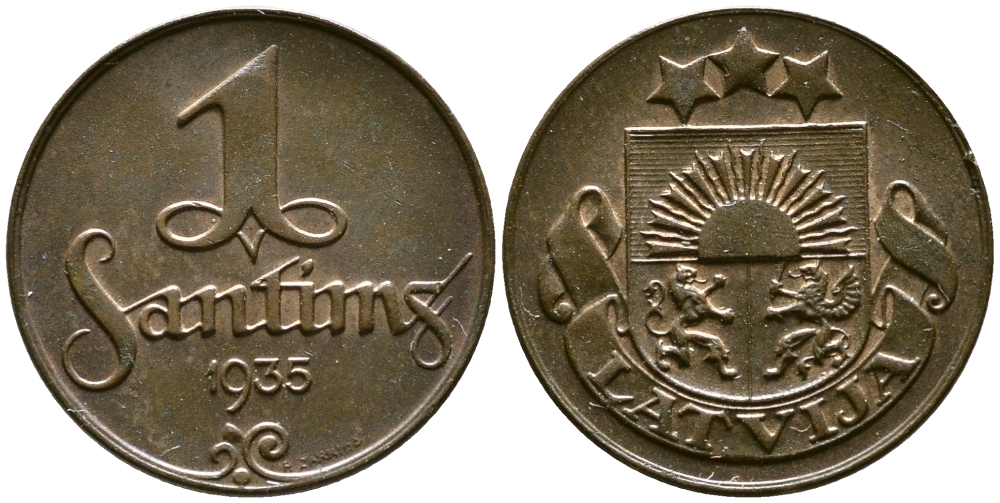 ЛАТВИЯ 1 САНТИМ 1935 ПЕРВАЯ РЕСПУБЛИКА (1918-1939) KM 1 бронза 86-242