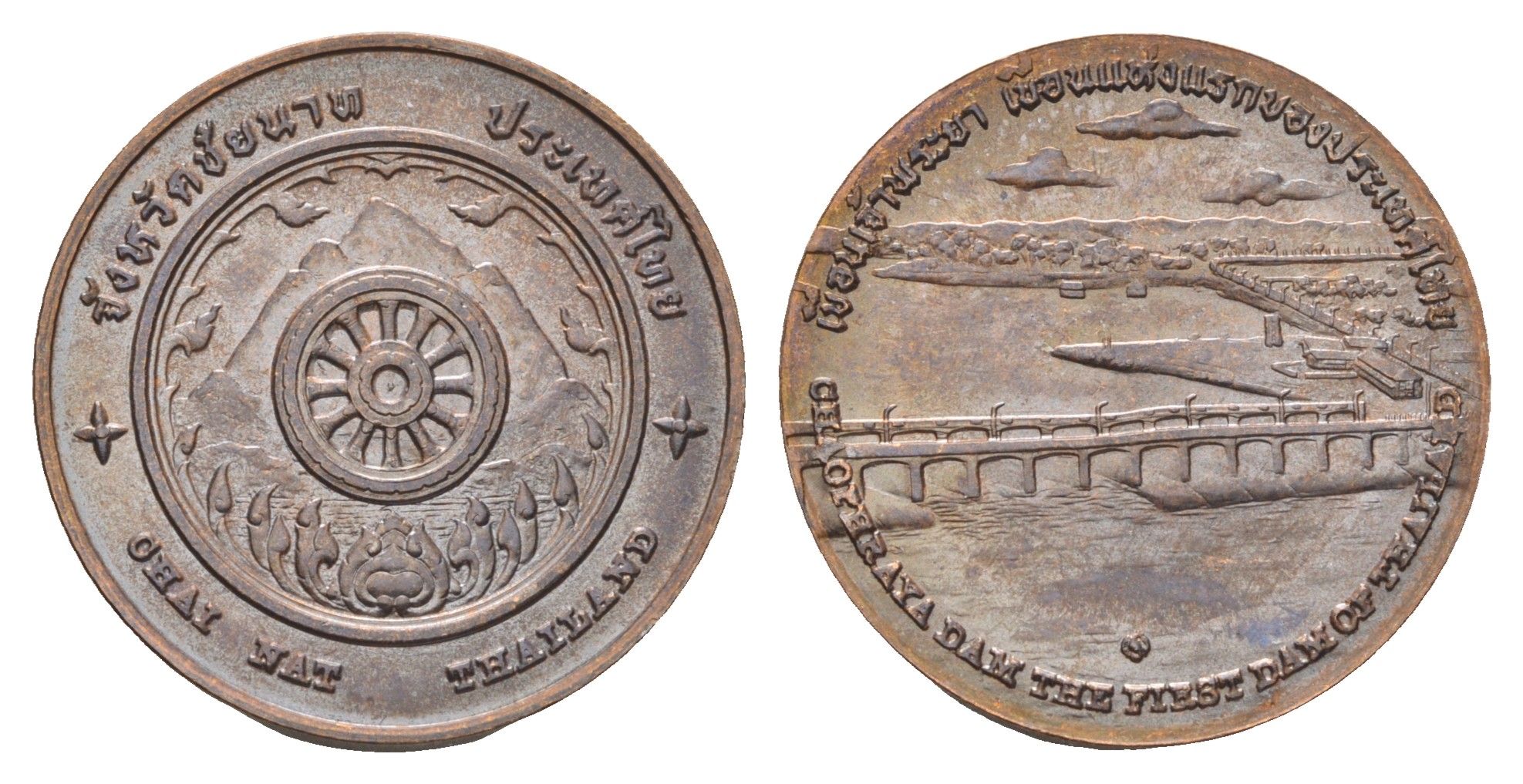 Таиланд медаль из серии провинции таиланд - Чай Нат XX век Плотина Бхумибол, гора, диаметр 25 мм, вес 7,9 гр медь UNC 4663-1112