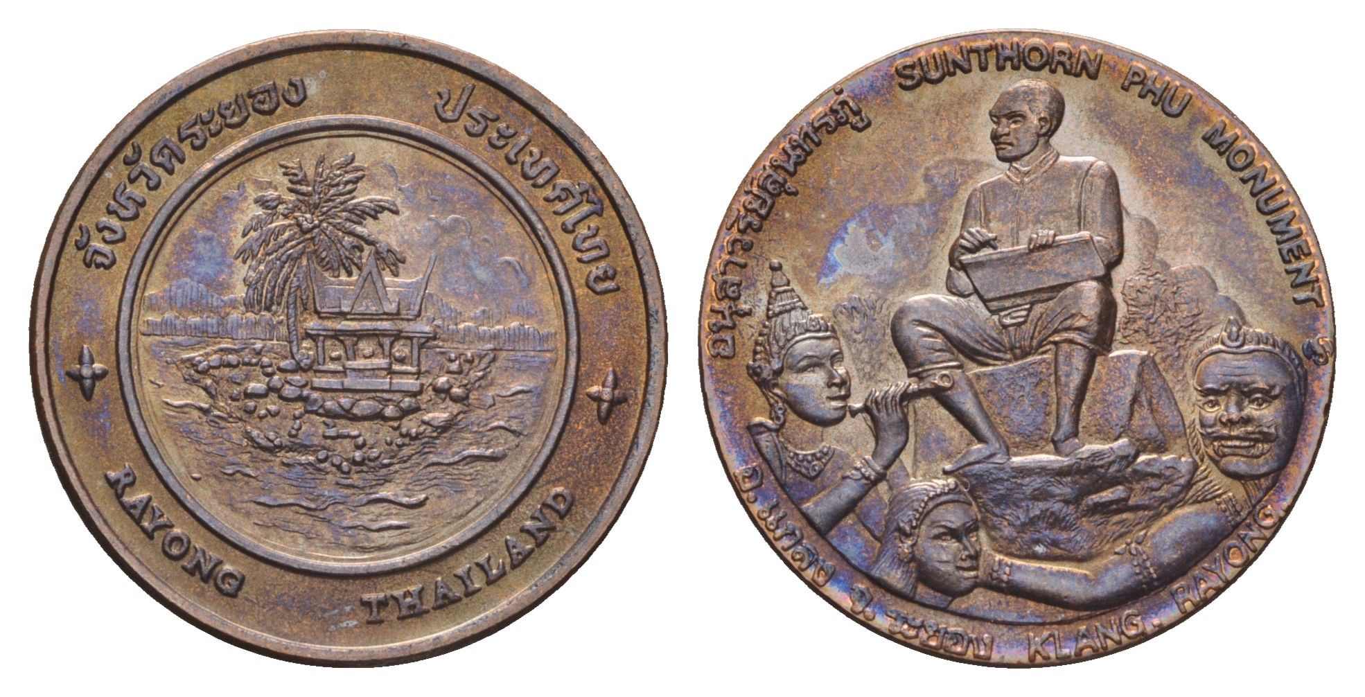 Таиланд медаль из серии провинции таиланд - Районг XX век Сунтон Пу, диаметр 25 мм, вес 8 гр медь UNC 4663-1234