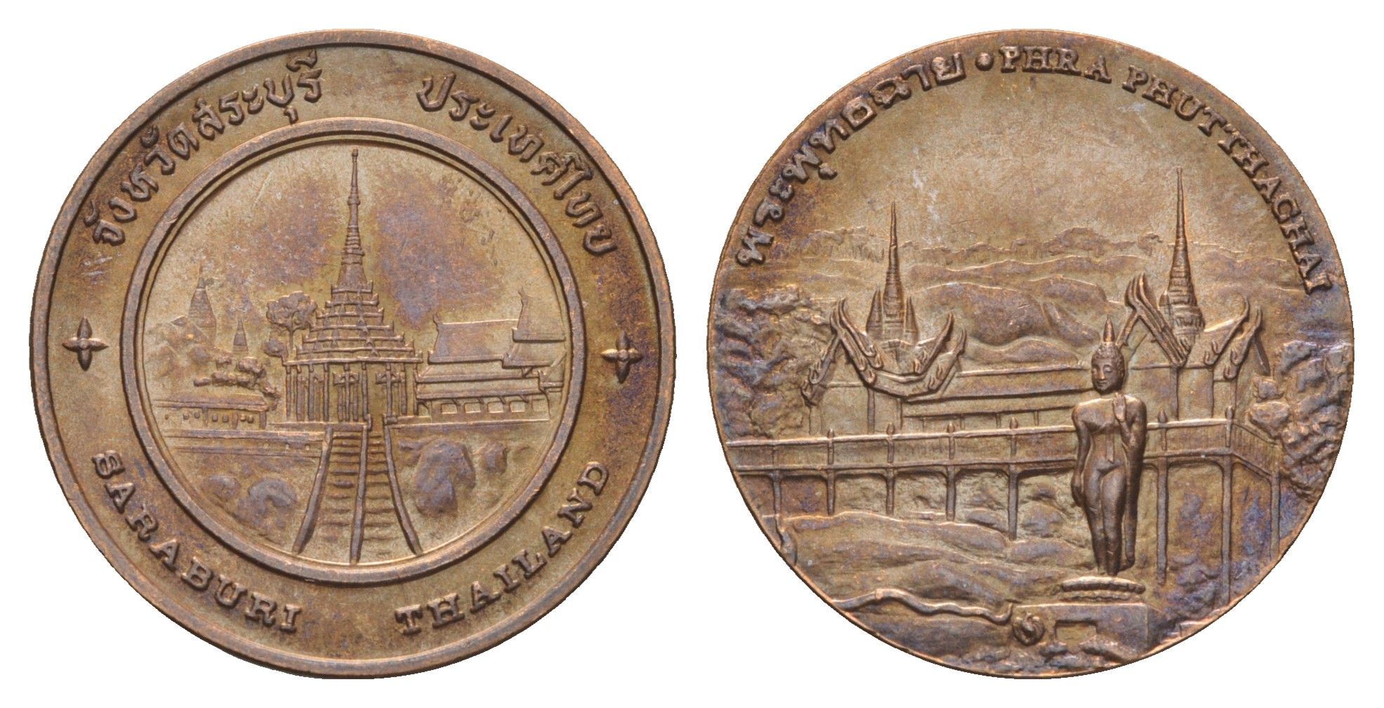 Таиланд медаль из серии провинции таиланд - Сарабури XX век Храм Лежащего Будды, диаметр 25 мм, вес 8,2 гр медь UNC 4663-1212
