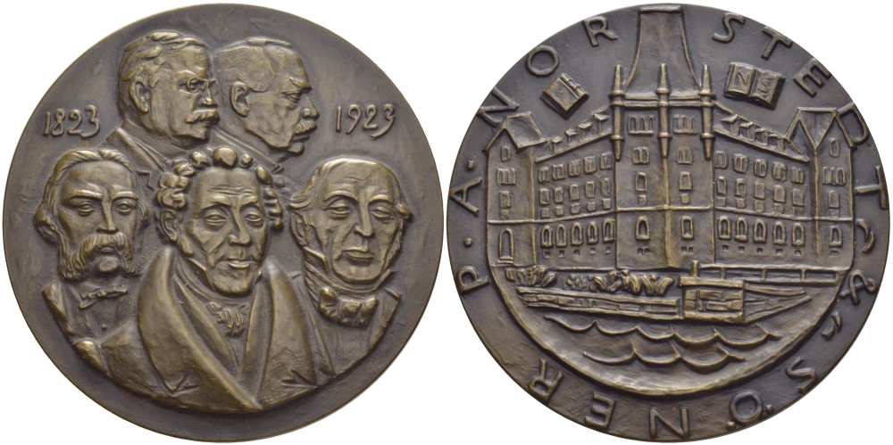 ШВЕЦИЯ МЕДАЛЬ 1923 К 100 - ЛЕТИЮ (1823-1923), КЛЕЙМО НА ГУРТЕ S&Co, ДИАМЕТР 56 ММ. бронза 1084-1-41