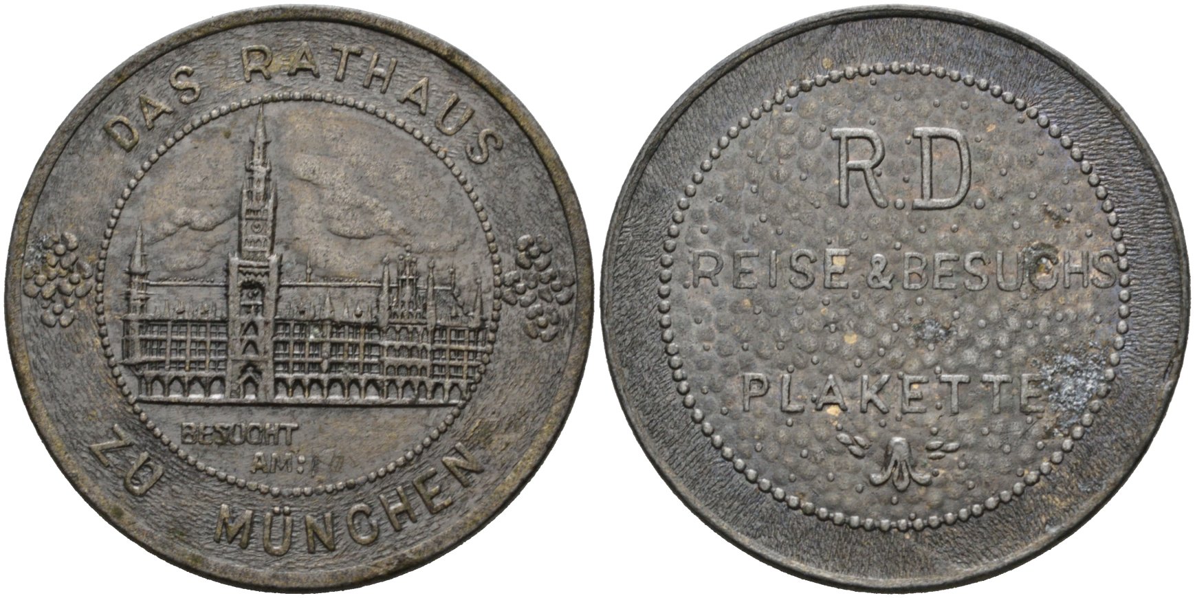 Швейцария медаль ND Ратушная площадь в Мюнхене, путешествия и посещения, диаметр 38 мм. цинк 1095-7-62