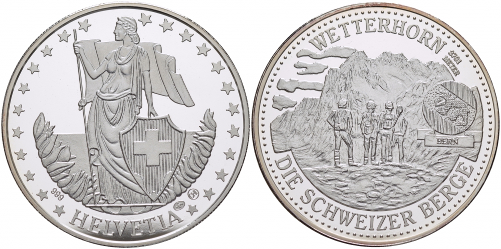 ШВЕЙЦАРИЯ МЕДАЛЬ ND СЕРИЯ ШВЕЙЦАРСКИЕ ГОРЫ, ГОРА ВЕТТЕРХОРН ВЫСОТА 3701 МЕТР, 1 OZ серебро PROOF 01-144-21
