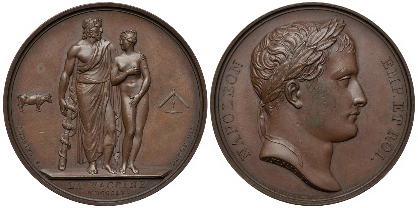 Франция медаль 1804 Наполеон Бонапарт, Венера с вакцинированным от оспы, 40 мм, 37,15 гр бронза aUNC 00-00