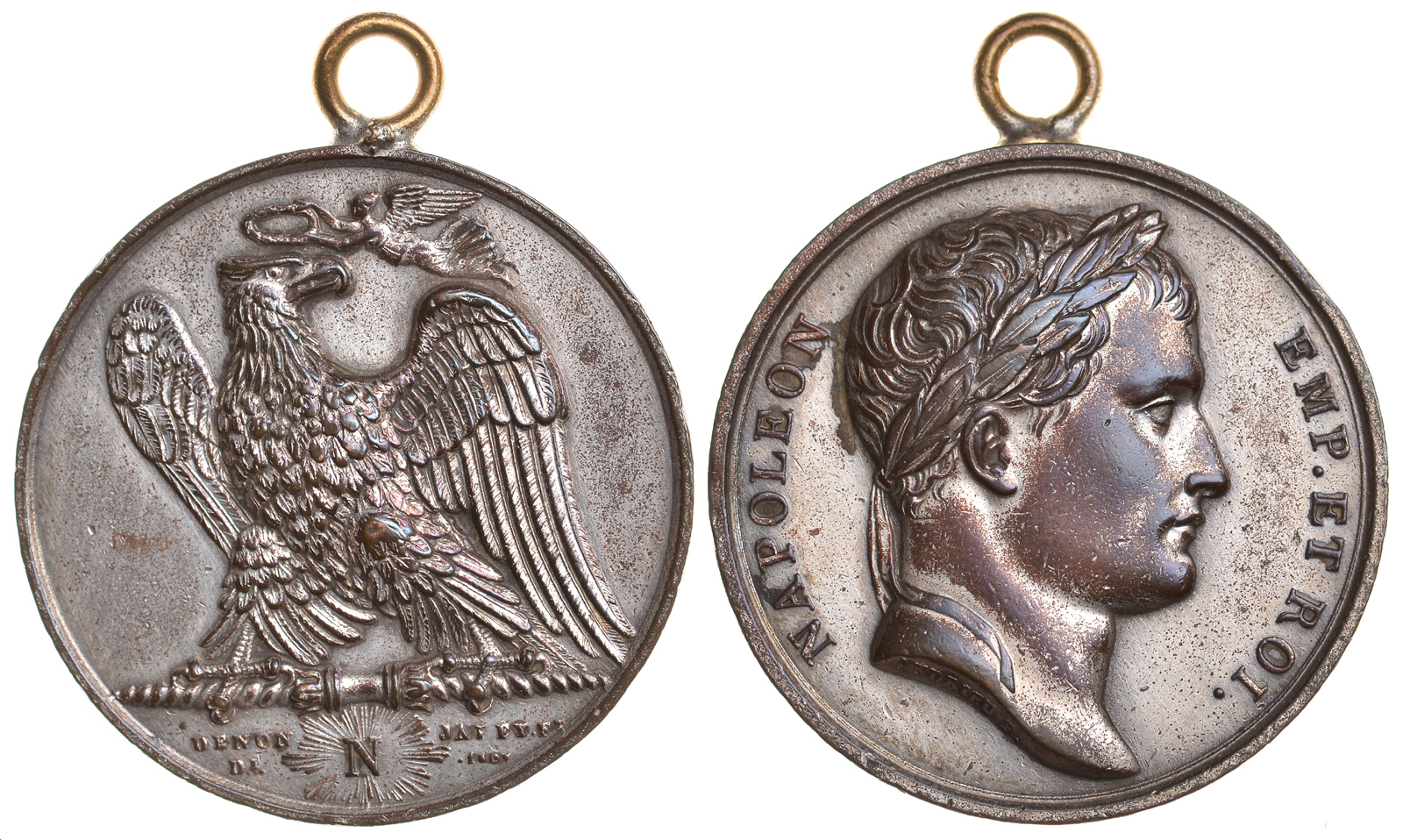 ФРАНЦИЯ МЕДАЛЬ ND НАПОЛЕОН ИМПЕРАТОР И КОРОЛЬ, ШЕЙНАЯ МЕДАЛЬ, ОРЕЛ, диаметр 41,5 мм, вес 37,18 гр. посеребренная бронза 01-107-23