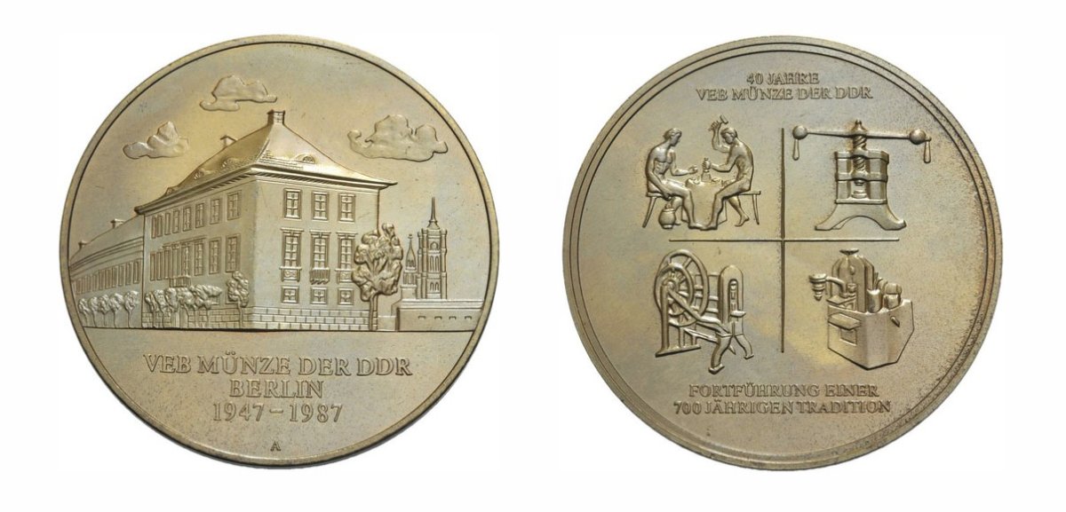 ГДР МЕДАЛЬ 1987 40 ЛЕТ МОНЕТАМ ГДР, 50 мм, 57,31 гр бронза 1072-7-11