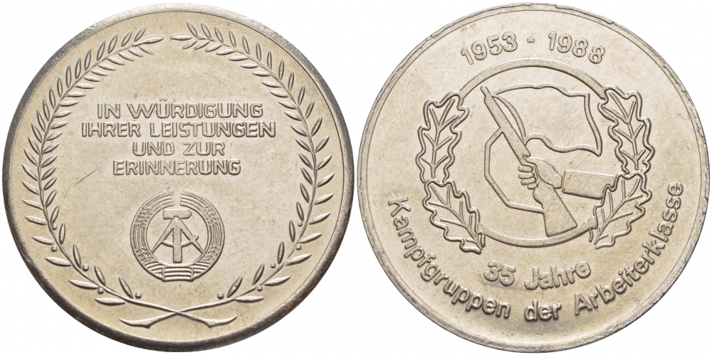 ГДР МЕДАЛЬ ND (1953-1988) 35 ЛЕТ РАБОЧИХ ДРУЖИН, ДИАМЕТР 35,5 ММ., ВЕС 23,1 ГР. медно-никель UNC 4537-813
