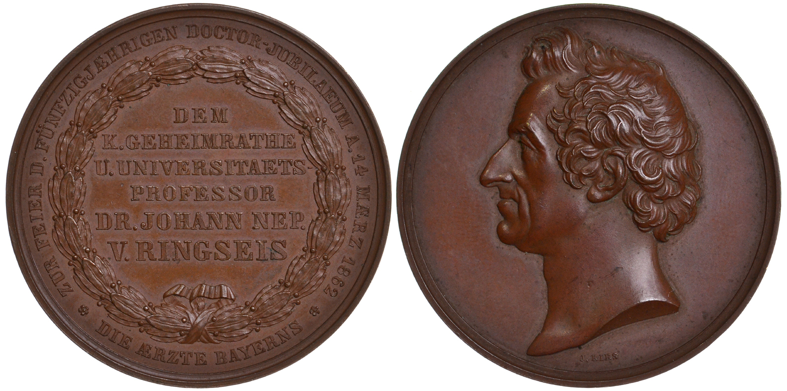 Германия медаль 1862 50 лет доктору Иоганну Рингсайзу, 48,1 мм, 53,8 гр Slg. Brettauer 976 бронза UNC 1066-10-31