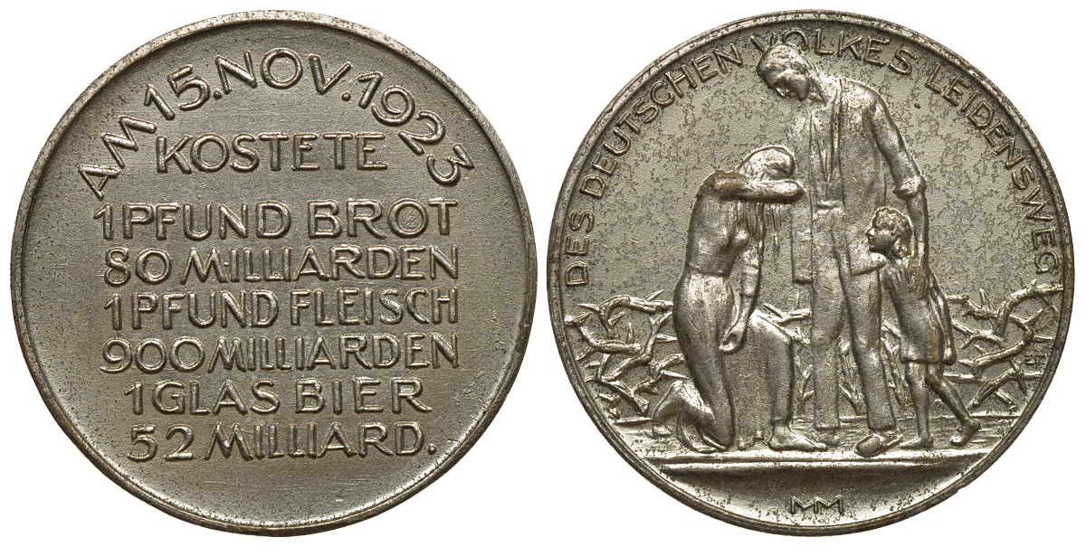 Германия медаль 1923 гиперинфляция, цены на продукты 15 ого ноября в Саксонии, 9,65 гр, 32 мм бронза 413-3133