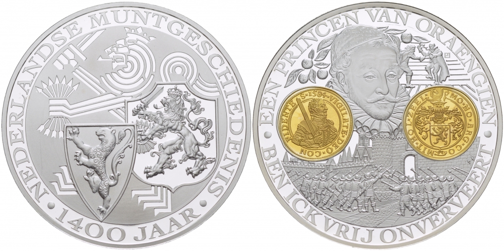НИДЕРЛАНДЫ МЕДАЛЬ 1400 ЛЕТ НИДЕРЛАНДСКОМУ МОНЕТНОМУ ДЕЛУ , СРЕДНЕВЕКОВЬЕ серебро позолота PROOF 04-092-32