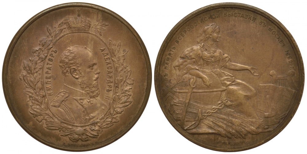 Россия медаль 1882 в память Всероссийской выставки в Москве, диаметр 46,2 мм Дьяков 930.5 R бронза 00-810-21