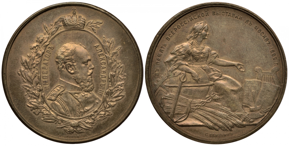 Россия медаль 1882 в память Всероссийской выставки в Москве Дьяков 930.5 R бронза 00-810-13