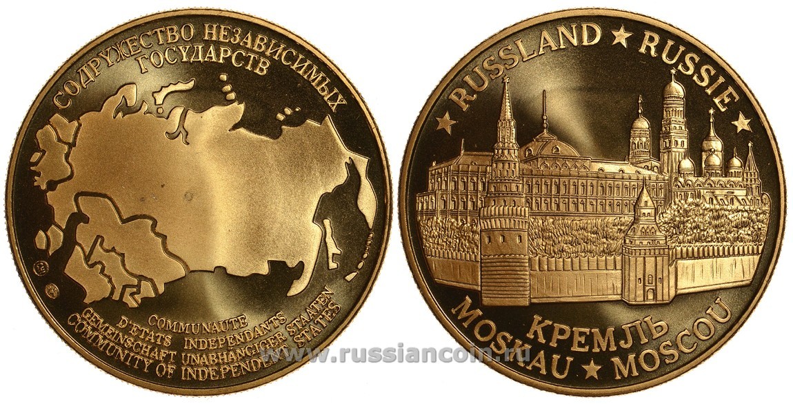 Содружество Независимых Государств медаль 1992 Россия, Москва, Московский Кремль, вес около 26 гр, диаметр 40 мм, гурт рубчатый нордик голд 5-3-1-117