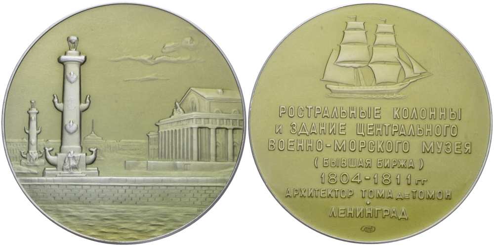 СССР МЕДАЛЬ 1965 ЛЕНИНГРАД. РОСТРАЛЬНЫЕ КОЛОННЫ И ЗДАНИЕ ЦЕНТРАЛЬНОГО ВОЕННО-МОРСКОГО МУЗЕЯ (АРХИТЕКТОР Ж. ТОМА ДЕ ТОМОН), МЕДАЛЬЕР Н.Н. ФИЛИПОВ, ЛМД, ДИАМЕТР 53 ММ. Шкурко423 алюминий UNC 1085-3-13
