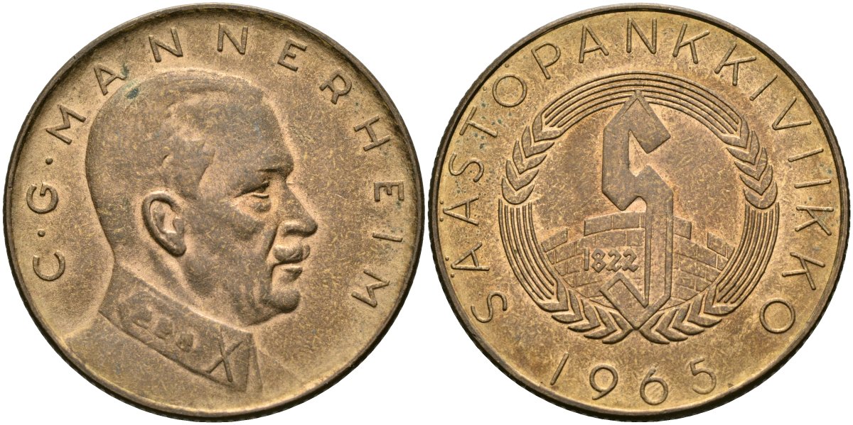 Финляндия жетон 1965 сбербанк Финляндии, Карл Густав Маннергейм, диаметр 32 мм. алюминиевая бронза 4583-926