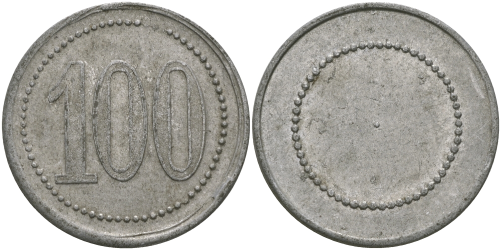 ФРАНЦИЯ 100 САНТИМОВ ND ПЛАТЕЖНЫЙ ЖЕТОН НАЧАЛА XX ВЕКА, ЦИФРЫ НОМИНАЛА 12 ММ., ДИАМЕТР 24 ММ. алюминий 98-1037