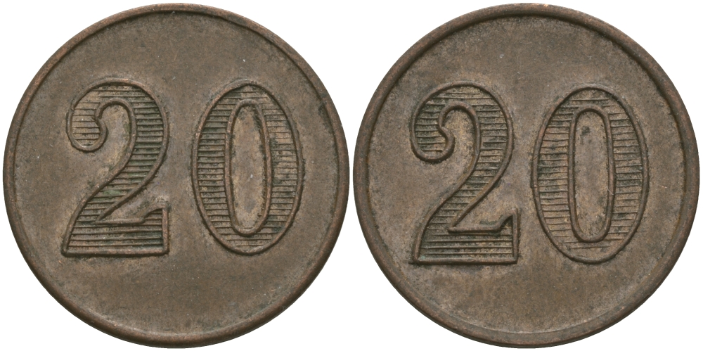 ФРАНЦИЯ 20 САНТИМОВ ND ПЛАТЕЖНЫЙ ЖЕТОН НАЧАЛА XX ВЕКА, ЦИФРЫ НОМИНАЛА 12 ММ., ДИАМЕТР 24 ММ. медь 98-945