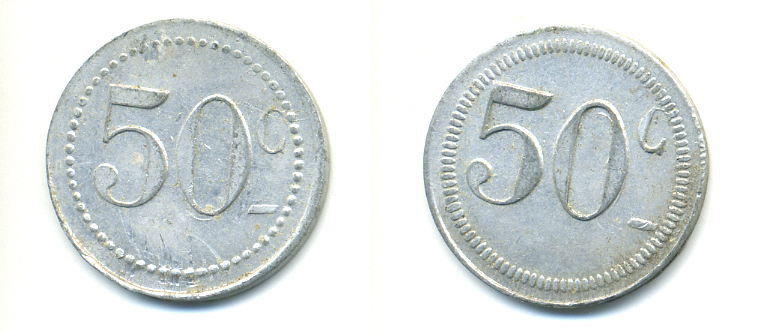 ФРАНЦИЯ 50 САНТИМОВ НАЧАЛО XX ВЕКА d 24 мм, вес около 1,0 гр., платежный жетон., платежный жетон алюминий 89-1026