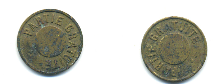 ФРАНЦИЯ ЖЕТОН НАЧАЛО XX ВЕКА d 18 мм, вес около 2,1 гр, PARTIE GRATUITE (ЧАСТЬ БЕСПЛАТНО) латунь 89-1014