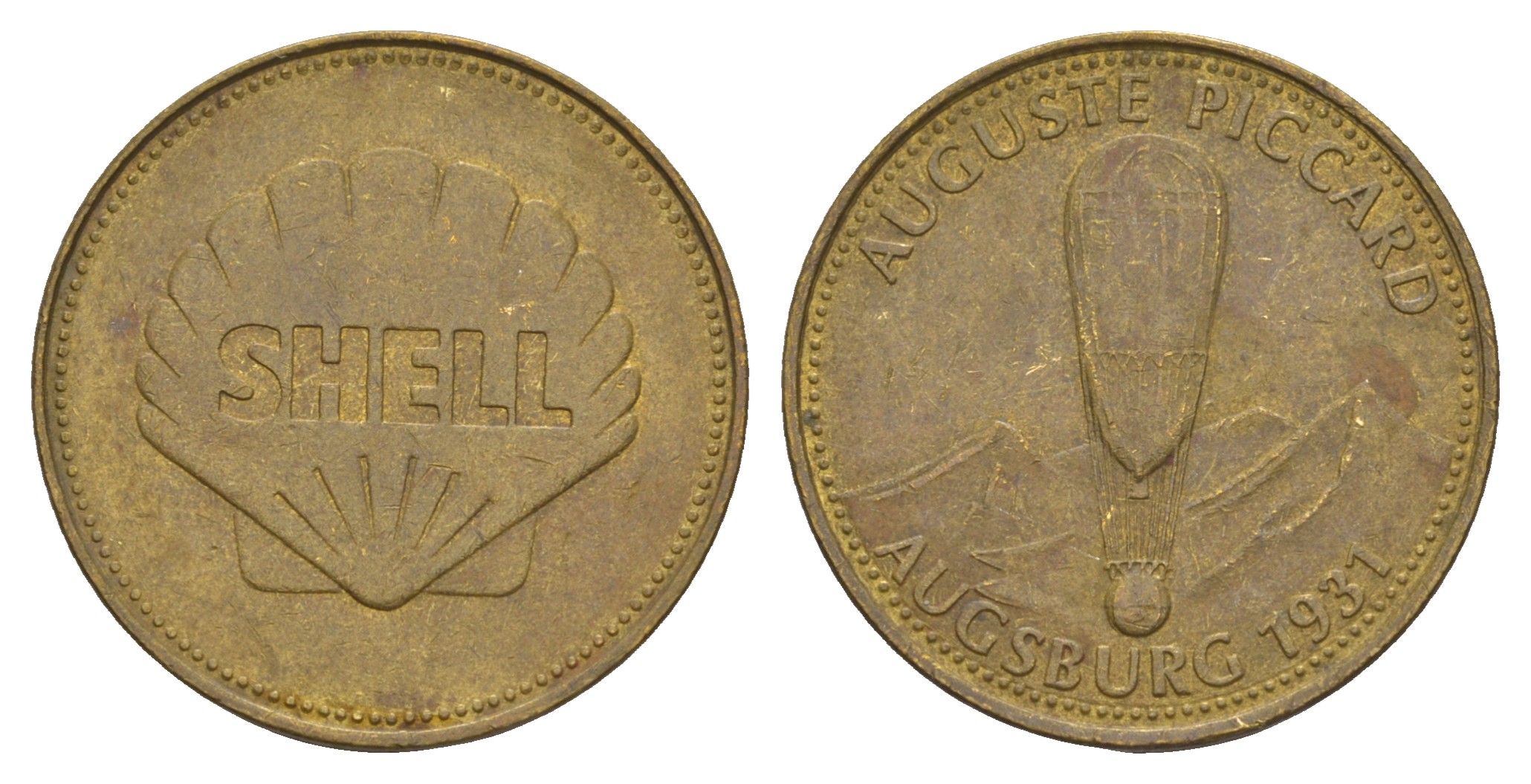 Франция жетон Shell - Человек в полете - Огюст Пиккар, Аугсбург 1969 диаметр 26 мм, вес 5 гр Kooij RS011.9c сталь плакированная латунью 4656-327