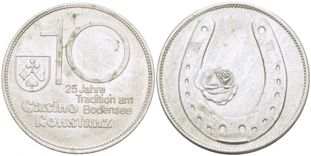 ГЕРМАНИЯ ЖЕТОН ND КАЗИНО ГОРОДА КОНСТАНЦ НА БОДЕНСКОМ ОЗЕРЕ, 25-ЛЕТНЯЯ ТРАДИЦИЯ, ДИАМЕТР 30 ММ серебро 4527-1012